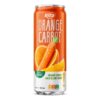 The label design is a celebration of the harvest. Bold, realistic imagery of sliced oranges and vibrant carrots tells the consumer exactly what they are getting: 100% natural inspiration. The metallic finish of the aluminum can packaging catches the light, making it a standout “hero product” in any retail display or restaurant fridge.